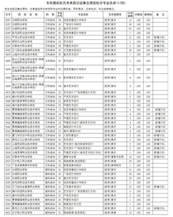 一、专科提前批艺术类征集志愿院校分专业名单(17所) 二、普通类高职高专批征集志愿院校分专业名单(806所)