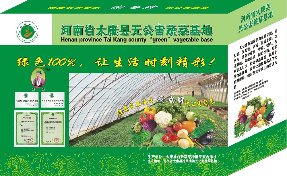 太康县白云蔬菜种植专业合作社位于太康县毛庄镇王隆集行政村(106国道与永登高速交汇处),成立于2009年3月份,主要以生产反季节黄瓜、辣椒、番茄、茄子等瓜果蔬菜为主。2009年通过了产品、产地无公害认证,于2012年注册了“谢安”“香云”商标。