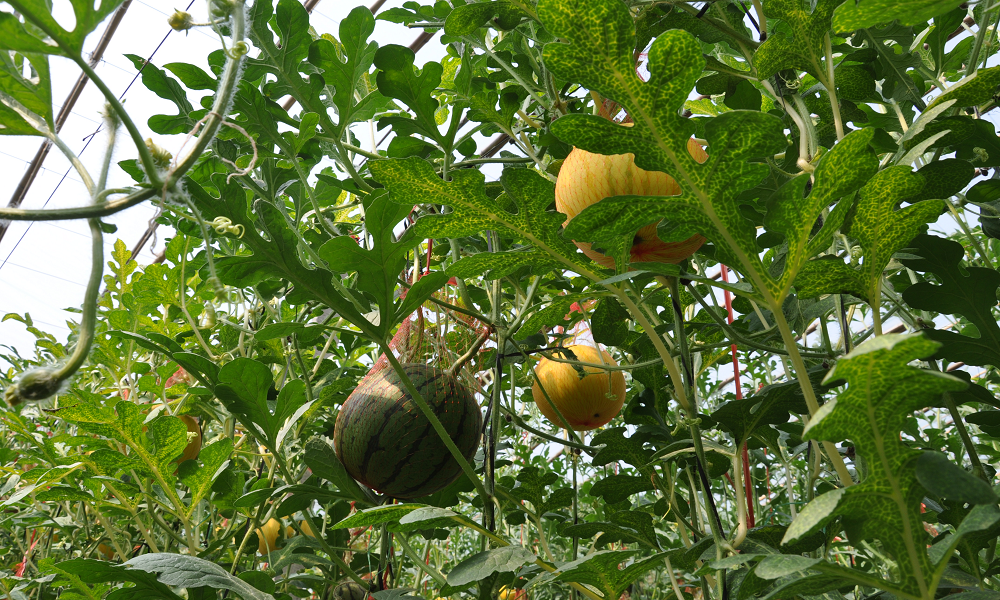 “慧林源”牌绿色食品袖珍西瓜,是慧林源合作社的主要产品之一,采用基地内的精选育种进行种植,整个生长期严格按绿色食品要求进行种植,用农家肥和生物菌肥作为底肥、用物理方法进行病虫害防治,用200米以上深井水和沼液沼渣进行灌溉,生长期内昼夜温差大(11月-5月),成熟后果粒重2-4斤,瓜皮弹指可破,瓜瓤粉红色,可渭皮薄味甜色泽鲜艳,入口脆酥甜,甜度达到15以上,畅销北京、西安、郑州、洛阳等地。