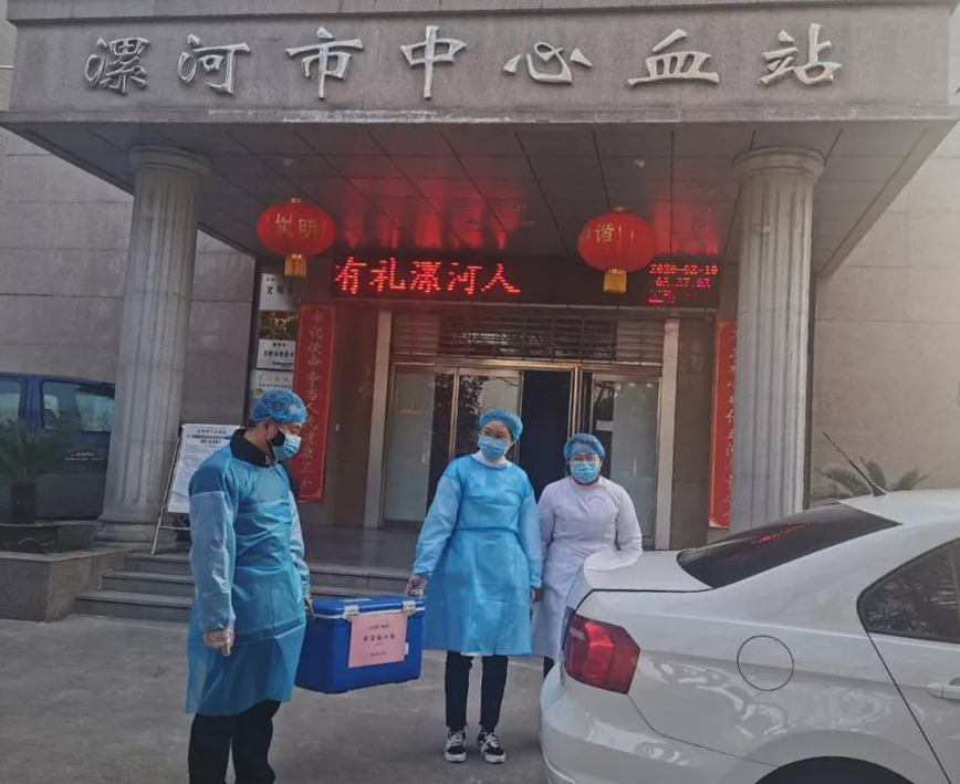 2月8日,漯河市中心血站与河南省血液中心取得联系后,紧急调配19个治疗量的单采血小板驰援武汉;2月10日上午9时,漯河市中心血站第二批23个治疗量的血小板再次紧急送往省血液中心。