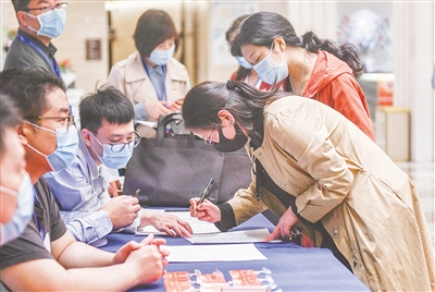 测量体温,填交表格,确认签字,领取出席证、会议资料、口罩及消毒液等防疫物品……上午8时,代表们就陆续来到驻地,在工作人员的细心引导下,到所在代表团报到处签到,整个报到过程高效、有序。