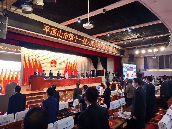 上午9时,李萍宣布:平顶山市第十一届人民代表大会第三次会议开幕。与会人员全体起立,会场内响起雄壮的国歌声。