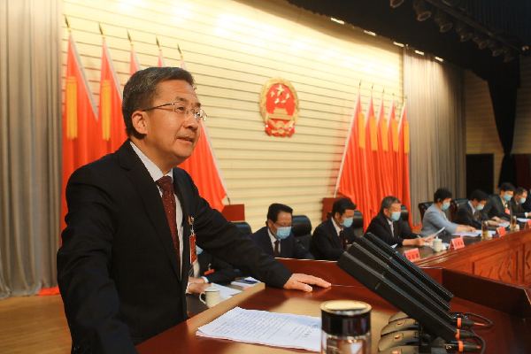 根据会议议程,市长张雷明代表市人民政府向大会作工作报告。报告共分三个部分:一、2019年工作回顾;二、2020年工作安排;三、全面加强政府自身建设。报告还回顾了新冠肺炎疫情防控情况。
