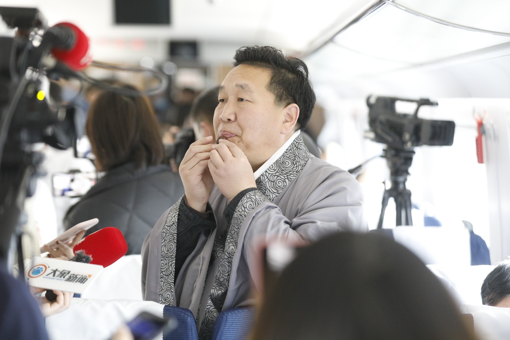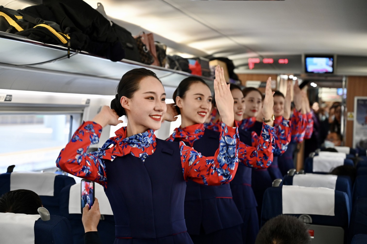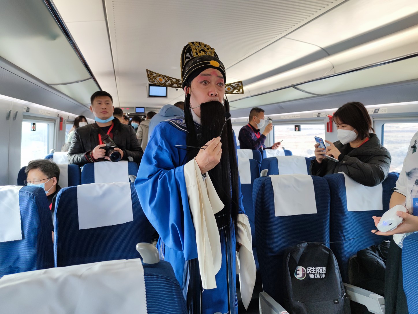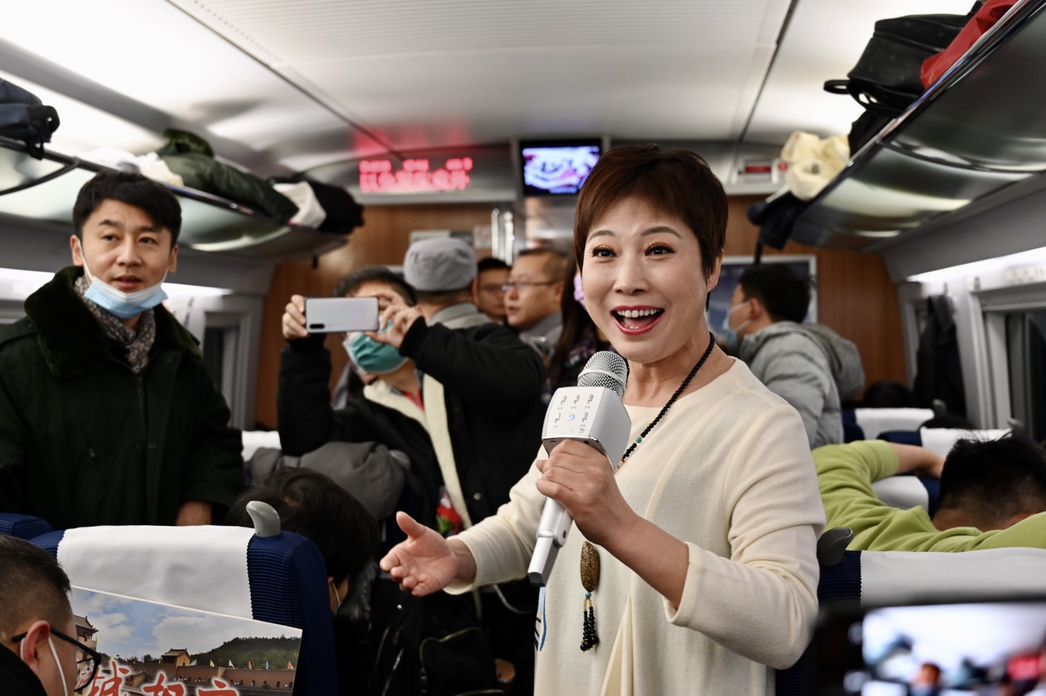 首趟发往太原的厢里“高姐”向乘客表演节目