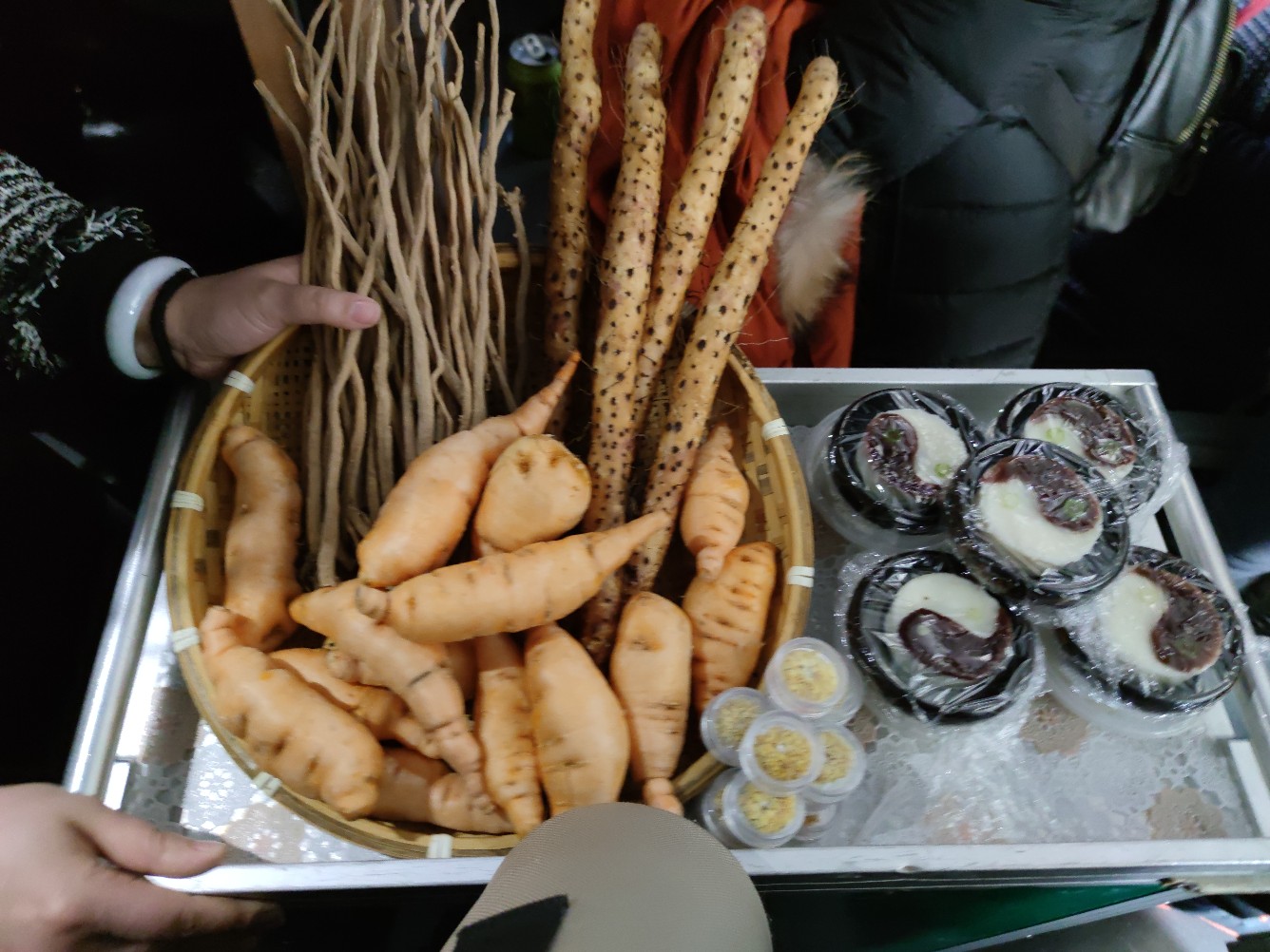 在焦作站工作人员展示当地特产“四大怀药”和山药泥