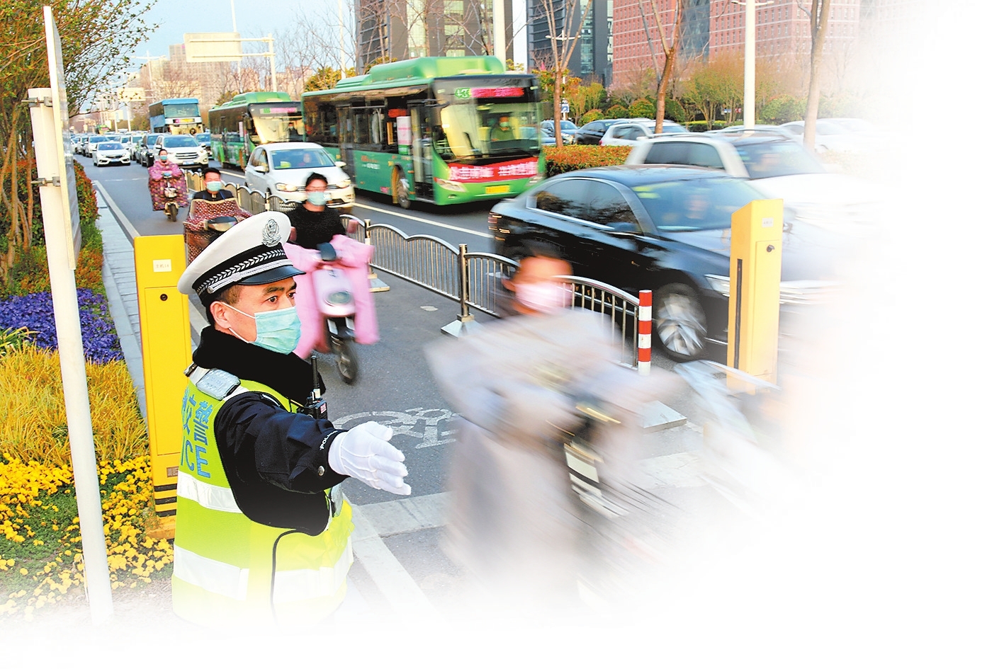 郑州市公安局交通警察支队六大队民警在执勤。聂冬晗刘军摄