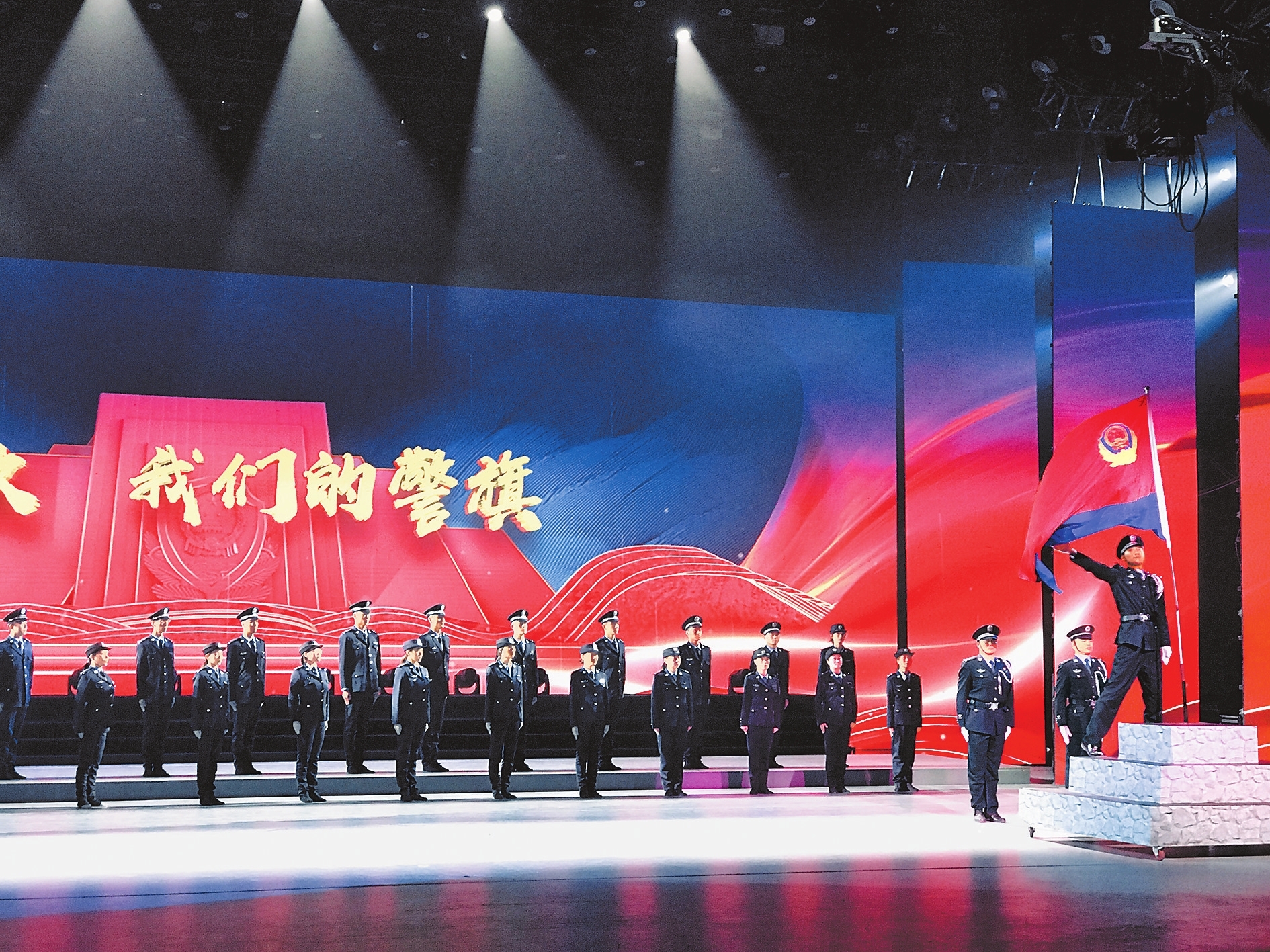 为庆祝首个“中国人民警察节”,1月7日,一场主题为《致敬——我们的警旗》演出活动在郑州举行。王洪岩摄