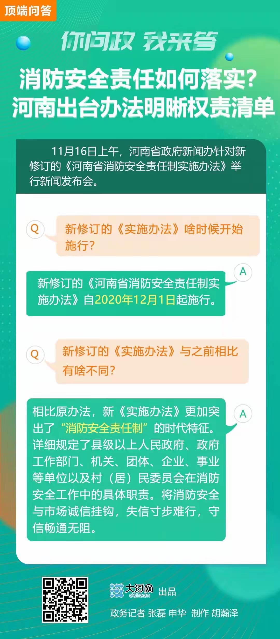 大河网讯(政务记者 申华)11月16日,河南省政府新闻办召开《河南省消防安全责任制实施办法》(以下简称《实施办法》)新闻发布会,重点介绍《实施办法》的修订过程、主要内容以及贯彻实施的有关情况,并回答记者提问。