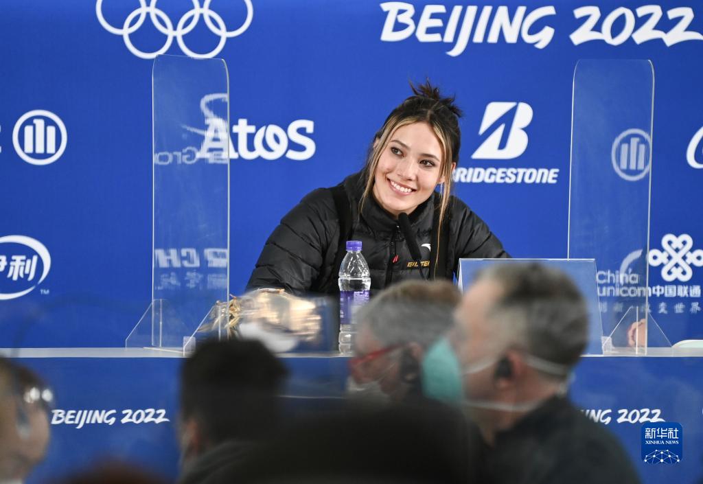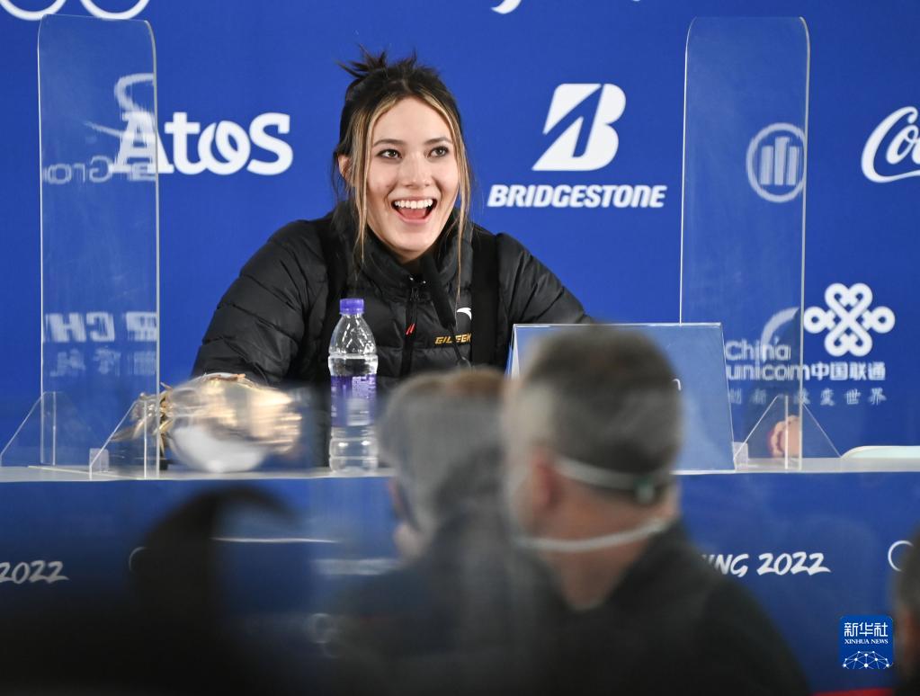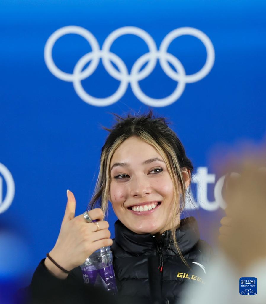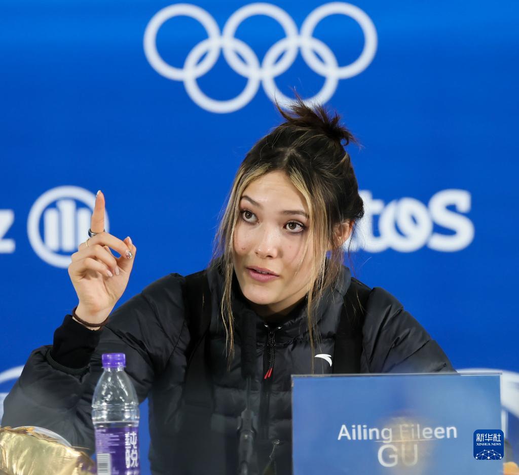 2月8日,中国选手谷爱凌在赛后新闻发布会上。