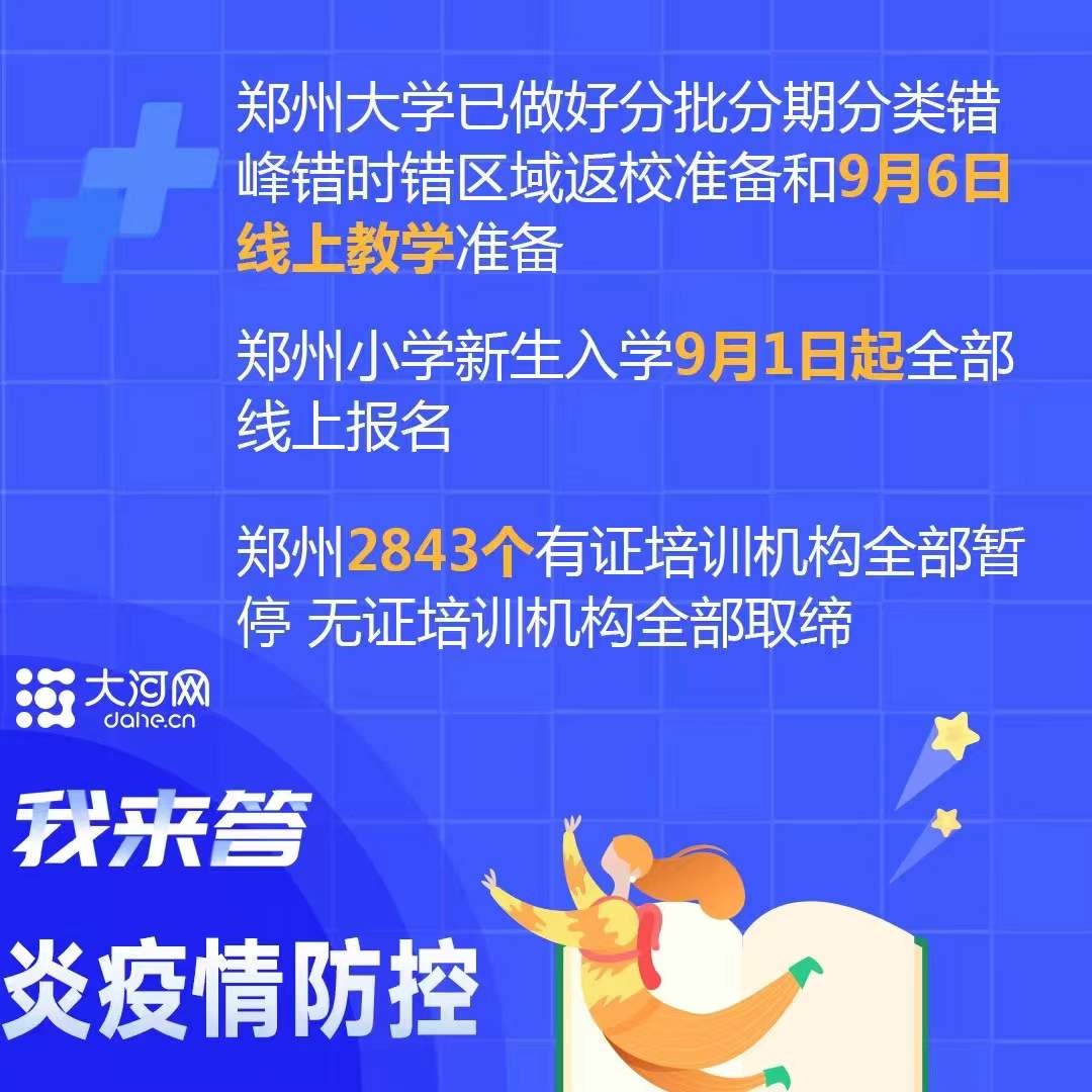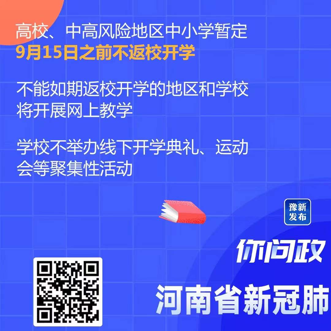当前已临近8月底,距离多数学校原计划开学时间已经很近,广大师生、家长对开学时间都比较关注。郑邦山介绍,根据教育部“中高风险地区学校暂缓开学、中高风险地区学生暂缓返校”的要求,以及“全面评估、确保安全,一院一校、一院多校,一地一策、一校一案,分类施策、市定省批”的原则,坚持安全底线,综合考虑疫情防控、灾后重建和各地各校办学条件,河南审慎作出了“高校、中高风险地区中小学暂定9月15日之前不返校开学,其他低风险地区中小学由当地研判确定”的安排。