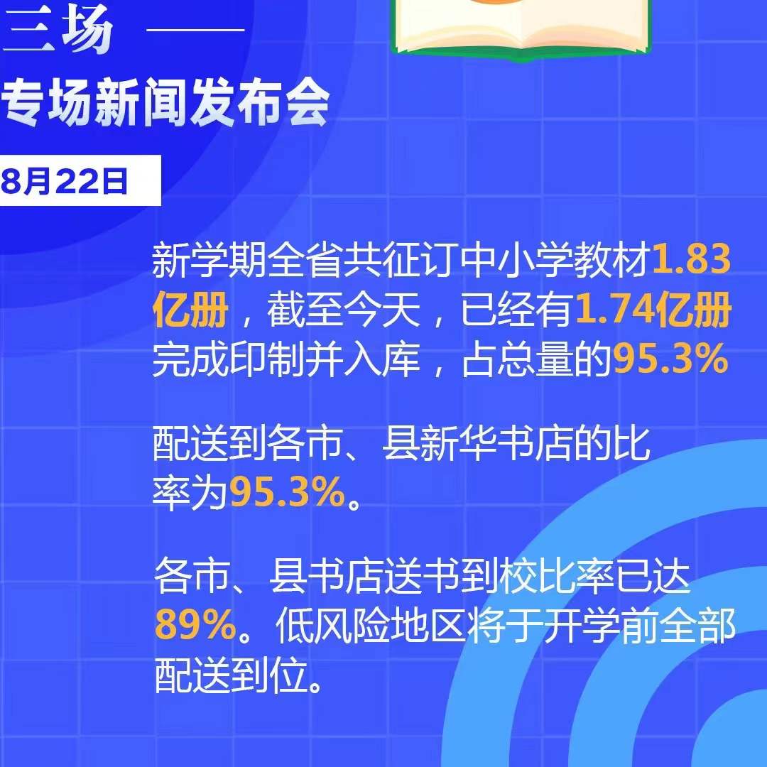 大河网讯(政务记者 申华)8月22日,在省政府新闻办召开的新闻发布会上,省教育厅厅长郑邦山首先介绍了全省教育系统科学确定开学时间、严格做好开学准备、坚决筑牢校园防线,以及组织学生疫苗接种、中小学教材印制保障等情况。