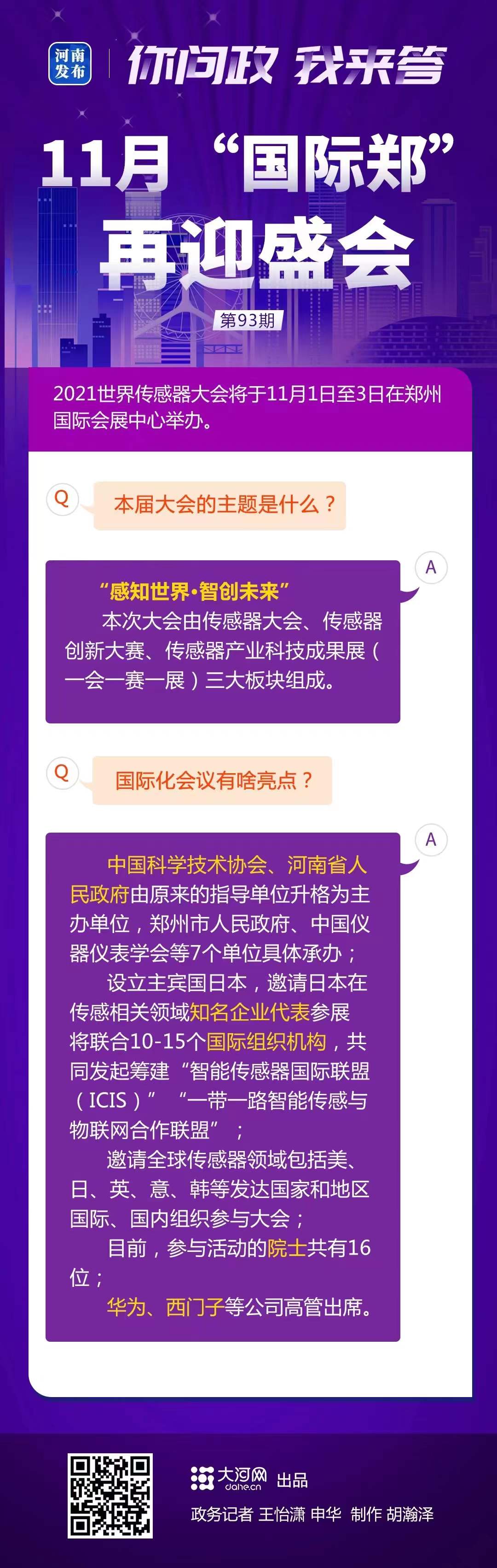 大河网讯(政务记者 申华 王怡潇)11月“国际郑”又迎盛会!2021世界传感器大会将于11月1日至3日在郑州国际会展中心举办。10月22日,省政府新闻办举行新闻发布会,介绍2021世界传感器大会相关情况,并回答记者提问。
