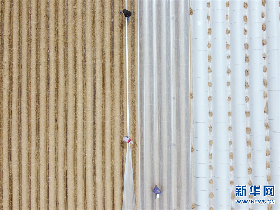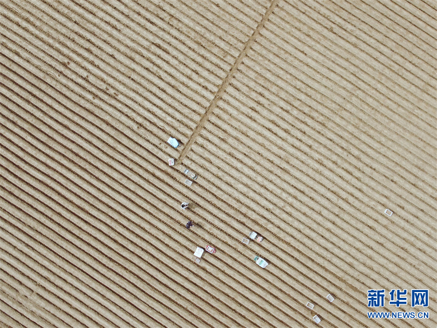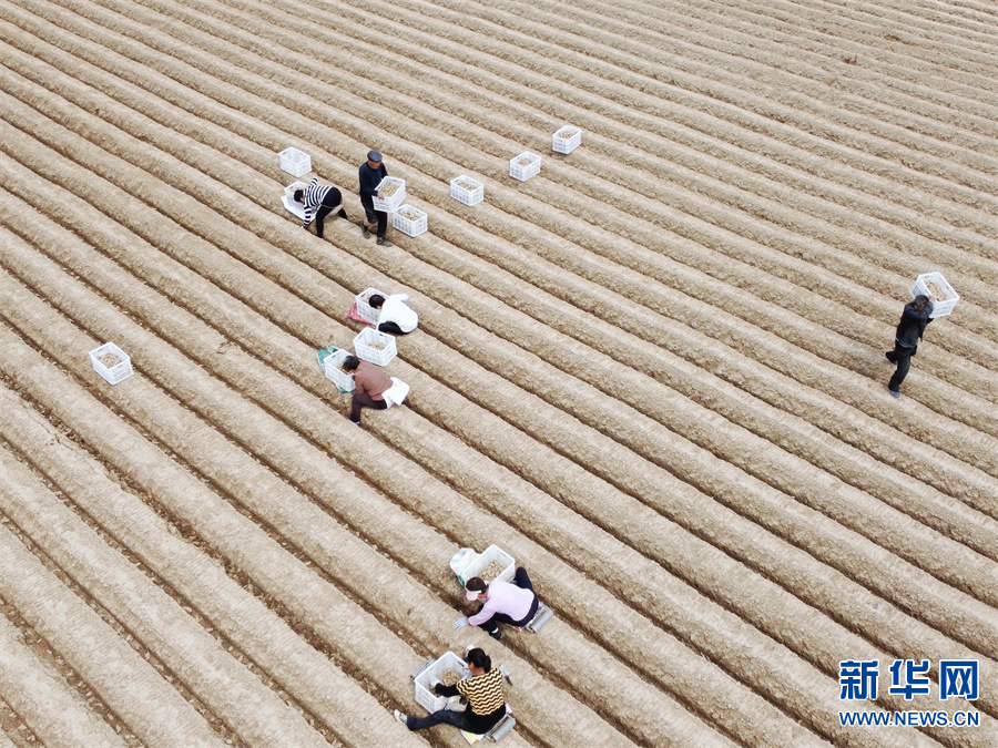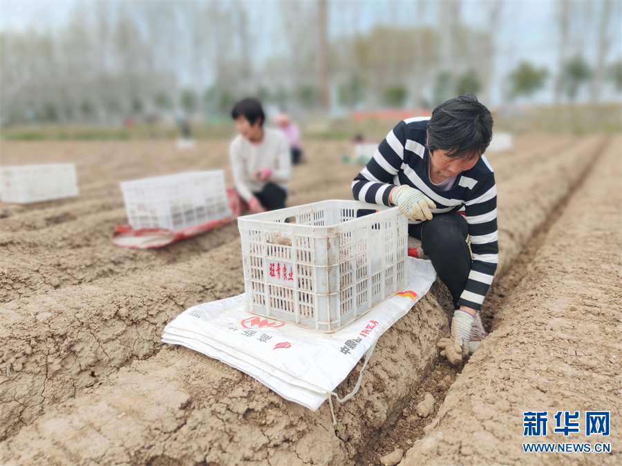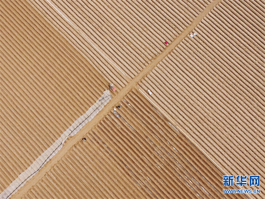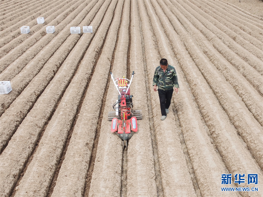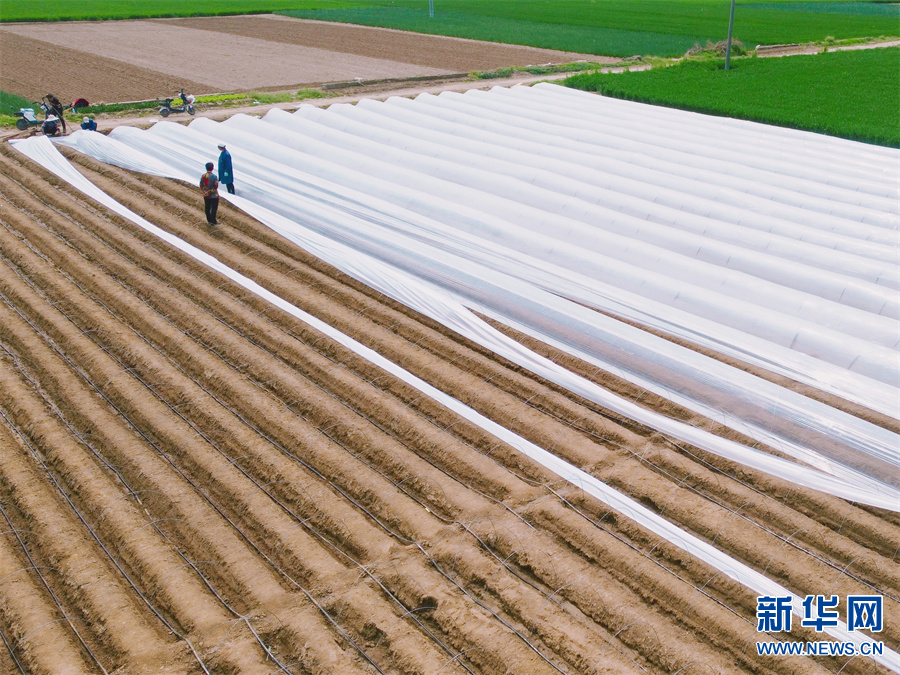 春忙时节,河南省南阳市镇平县侯集镇姜营村旺青农民专业合作社生姜种植地里,农民抢抓农时,旋地、播种、滴灌、覆膜,一道道工序有条不紊,一派繁忙景象。新华网发(时君洋 李树娴 摄)