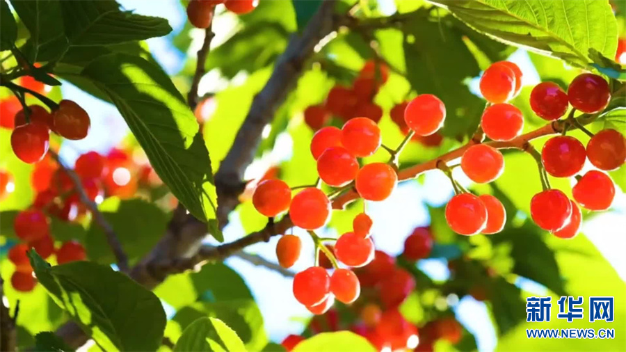 近日,河南省南阳市镇平县老庄镇万亩樱桃迎来丰收。一串串红色“小玛瑙”或藏在叶底,或挂在枝头,微风吹来,轻轻摇曳,让人垂涎欲滴。