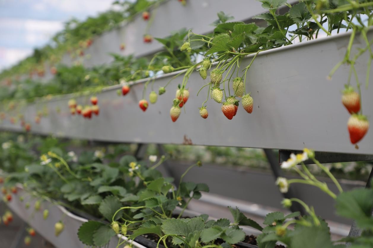 “除了智能阳光玻璃温室大棚以外,我们还有普通大棚9个,去年9月份种植的草莓,到今年5月份能接4茬果,后续我们自己育苗,做好水肥管理,让植株更好的生长,结出更多美味的果实;目前在建有20多亩的薄膜联动大棚,规划种植樱桃、葡萄、桃、杏、李等,让小西岗村四季有花,三季有果,打造成为老庄的‘百果园’”。基地负责人李军说。