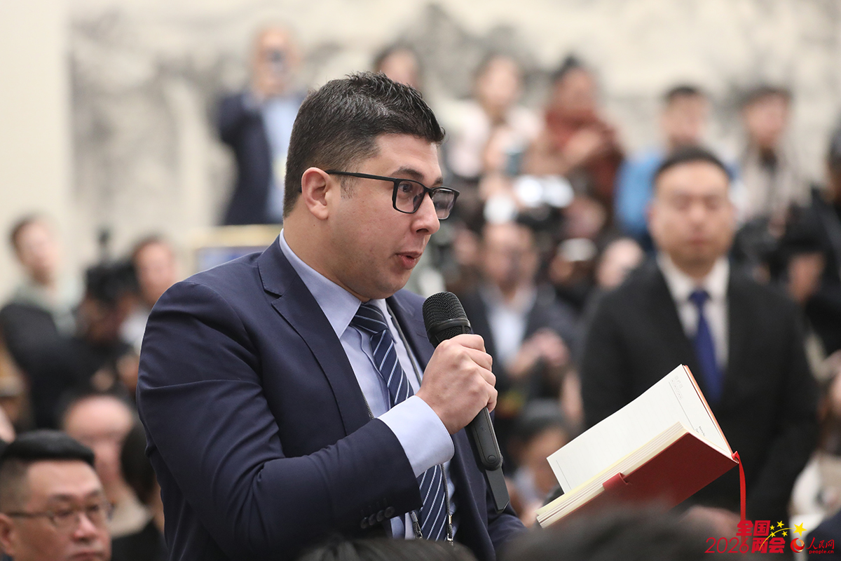 中央广播电视总台记者现场提问。人民网记者 尹星云摄