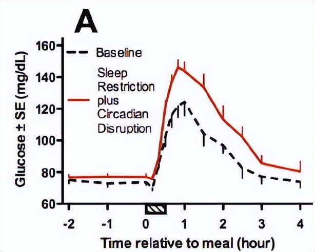 就放一张图,纵轴是糖值,横轴是时间,黑线是基线,红线是节律打乱: