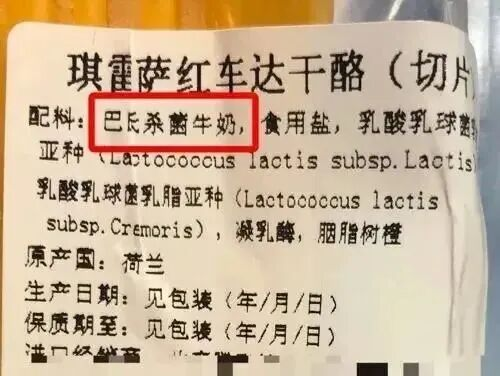 看准成分表。成分表第一位必须是“生牛乳”或“干酪”。如果第一位是水或糖,直接放回货架。
